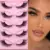 XF ٥ أزواج من رموش عين الثعلب، رموش منك صناعي منفوشة حريرية ثلاثية الأبعاد بستايل عين القطة للبيع بالجملة مع صندوق تغليف مخصص بشعار خاص